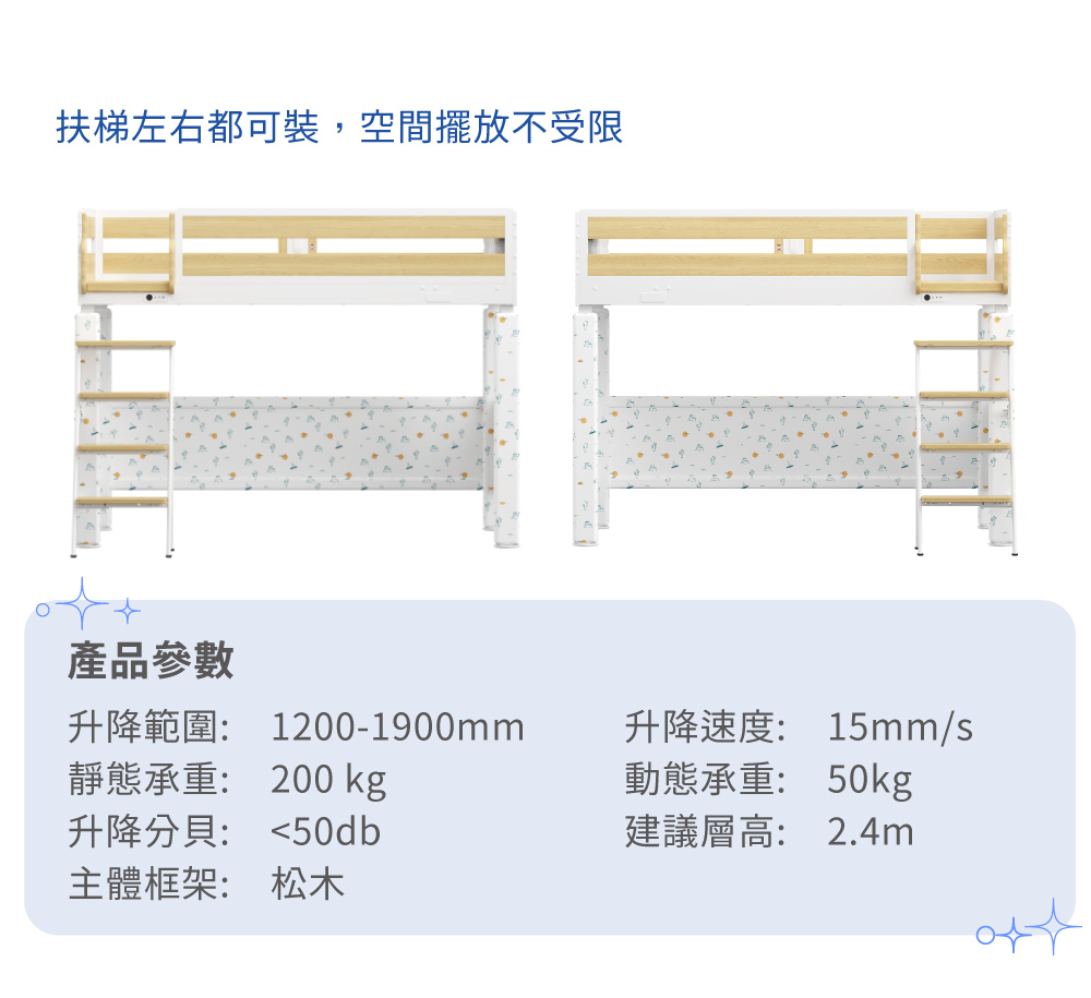 3.購買床組前請先規劃床組擺放方式(請注意要有電源插座),並在購買時備註爬梯方向置左或置右。