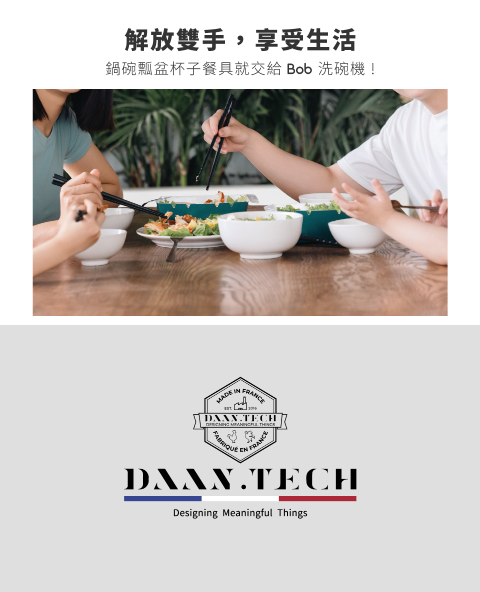Daan Tech 秉持循環經濟和節約環保的概念,開發出新一代法國 Bob 小寶洗碗機。
