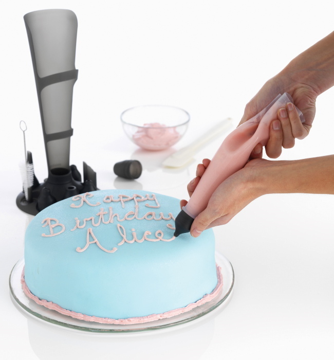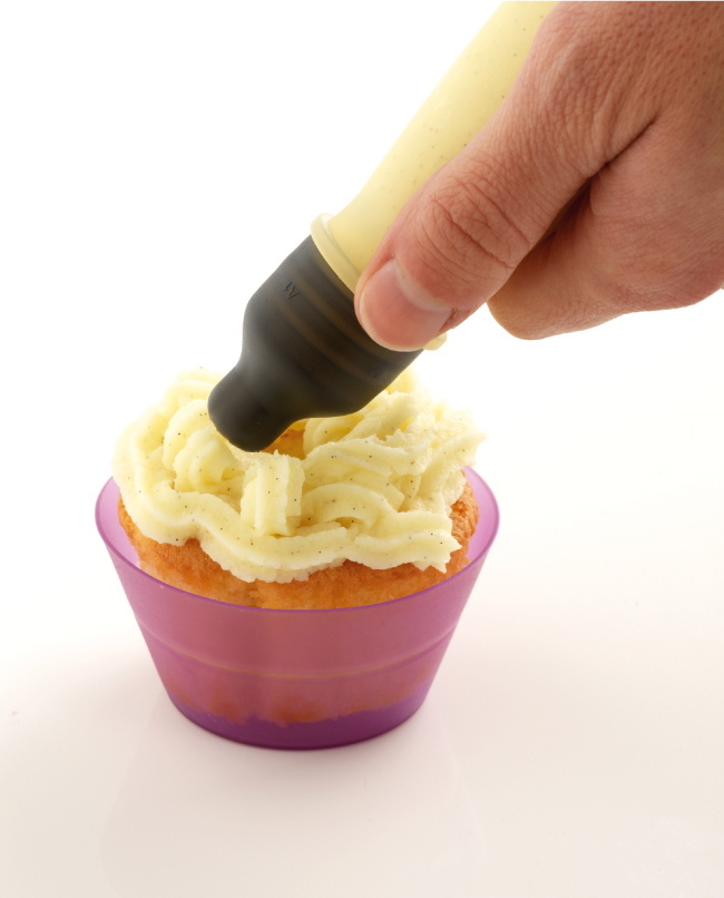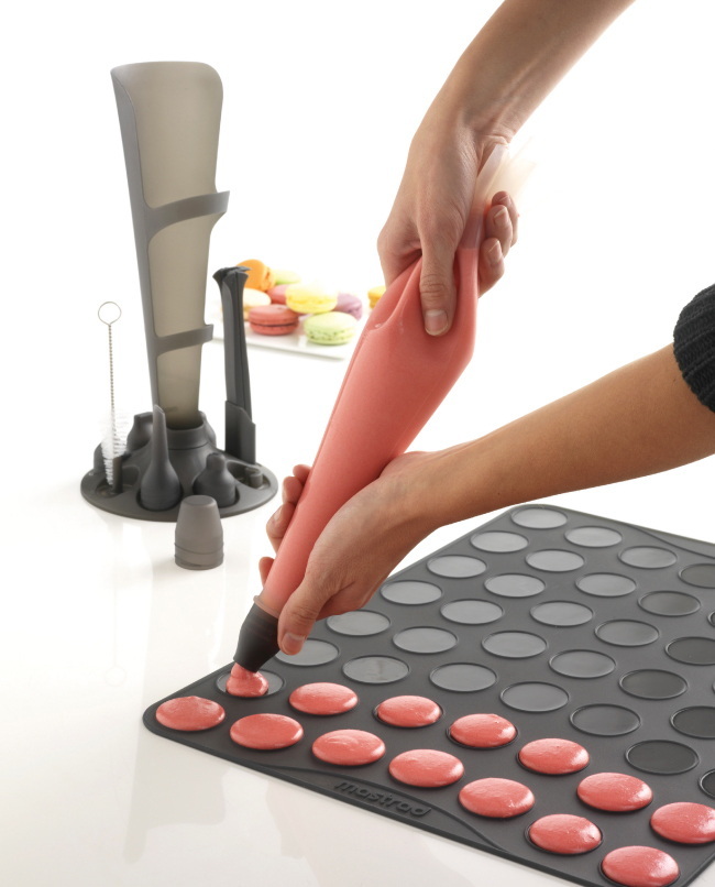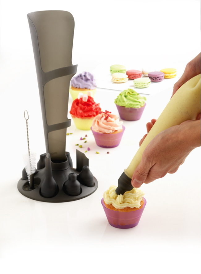 PASTRY BAG SETGreat for macarons making, to decorate cupcakes and fill choux pastry easily.Set includes:• Filling the pastry bag is simple once placed vertically on its stand• The stand also provides stocking space for the 6 nozzles, the clip and the cleaning brush• The clip is ideal for holding the bag when in use or to conserve thepreparation• Instructions for use and recipes included.