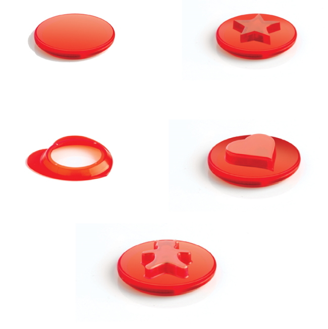 內模有圓形、小熊、愛心、星星四種可互相搭配產生12種造型