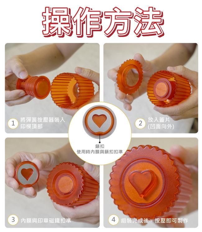 用磁性內裝組合後即像蓋章一樣壓模及切割