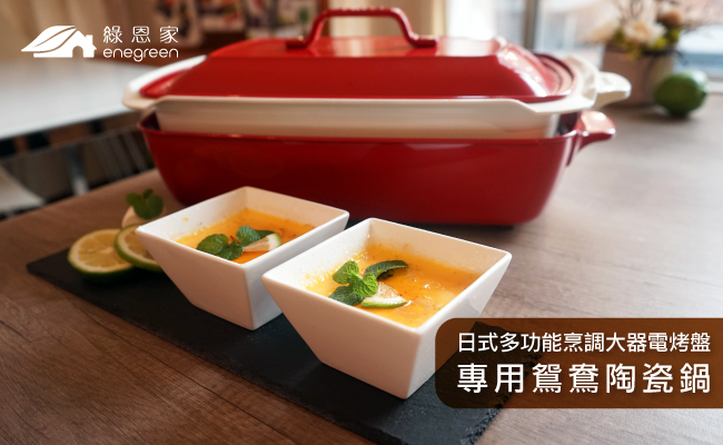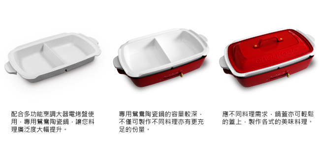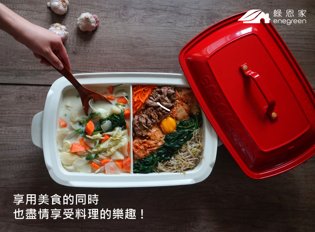 enegreen綠恩家日式多功能烹調大器電烤盤-專用鴛鴦陶瓷鍋,貼心的雙把手設計,